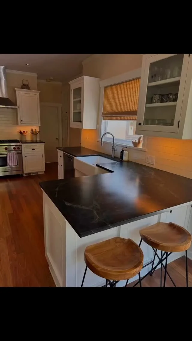 Soapstone is a durable, non-porous natural stone that resists stains and heat. It develops a beautiful patina over time, giving your kitchen or bathroom a timeless, organic look.